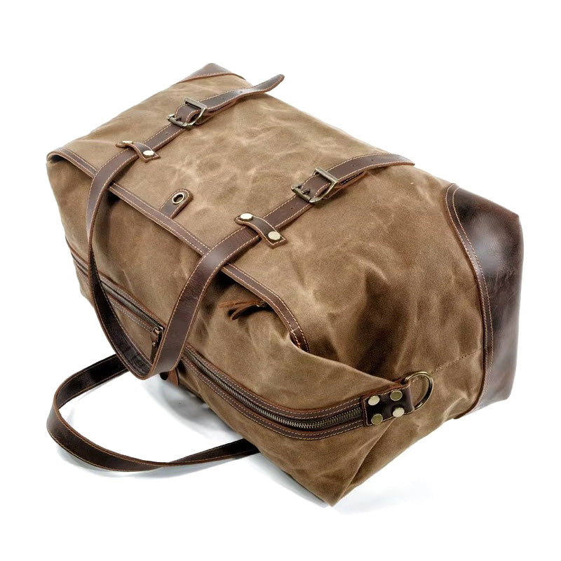 Introducing the Aberdeen Duffel – a rugged yet refined travel companion. Crafted from premium waxed canvas with full-grain leather accents and double stitching for enhanced durability, it blends durability with timeless style. The spacious main compartment, multiple interior pockets, and a zippered exterior pocket keep your essentials organized and within reach. Sturdy leather handles and adjustable buckled straps add both function and character. Designed for weekend getaways, business trips, or daily use, the Aberdeen is built to go wherever adventure calls.