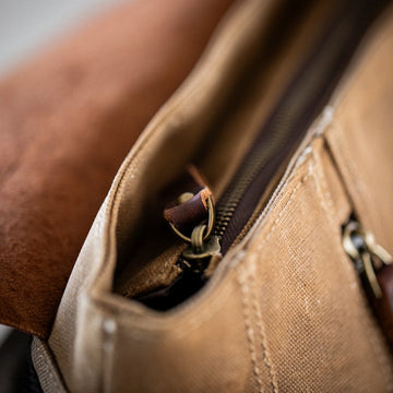 The Brugesis handcrafted with loving dedication to detail. Sturdy canvas, strong zippers and thick leather ensure that the Bruges will survive any adventure, even if it gets a few scratches.