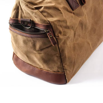 Introducing the Manchester Duffel – a rugged yet refined travel companion. Crafted from premium waxed canvas with full-grain leather accents, it blends durability with timeless style. The spacious main compartment, multiple interior pockets, and a zippered exterior pocket keep your essentials organized and within reach. Sturdy leather handles and adjustable buckled straps add both function and character. Designed for weekend getaways, business trips, or daily use, the Manchester is built to go wherever adventure calls.